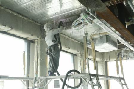 耐火工事を施工する現場作業スタッフ(耐火被覆工事)