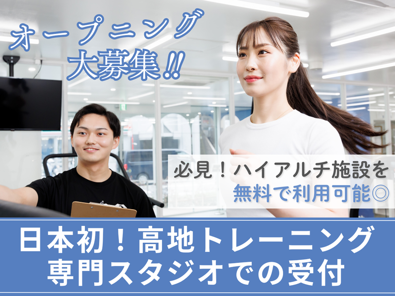 仕事内容 ┏━━━━━━━━━━━━━━━━━┓ オープニングスタッフ募集❗❗ 高地トレーニング専門スタジオでの 受付スタッフお仕事✨ ┗━━━━v━━━━━━━━━━━━┛ ―――――――――― ✎お任せするのは… ―――――――――― ⏩ウォーキング・トレーニングなどの指導、 ⏩お客様受付 ⏩安全管理 など ≪ スポーツ好き必見❗❗ ≫ ▶トップアスリートも通う ハイアルチ施設が無料で利用可能◎ ⭐今いる先輩スタッフも9割未経験Start! ⭐評価制度あり!頑張り次第でお給料UP! ⭐6ヶ月毎に昇給機会有!頑張りを評価♪ ⭐チームで助け合い、お互いの成長を サポートすることを大切にしています! ༶ ༶ ༶ ༶ ༶ ༶ ༶ ༶ ༶ ༶ ༶ ༶ ༶ ༶ ༶ ༶ ༶ ༶ *✨\フリーター大歓迎&活躍中!/✨* フルタイムでシッカリ稼ぐ方や、 他のバイトとのWワークで働く方など、 色々な方が活躍中! *✨\社員登用制度もあり/✨* フリーターから正社員を 目指す事も可能です! 最近はスポーツ好きの 大学生バイトの子が正社員に! ワイワイと明るいお店で、 爽やかな汗を流しながら 気持ち良く働きませんか☆ ༶ ༶ ༶ ༶ ༶ ༶ ༶ ༶ ༶ ༶ ༶ ༶ ༶ ༶ ༶ ༶ ༶ ༶ ≪日本初の高地トレーニング専門スタジオ≫ 標高2500mの高地環境を空間内に再現! 酸素濃度が低い環境で短時間で効率的、 最先端技術で細胞から鍛えます。 (低酸素空間でたった30分歩くだけで 驚きの運動効果が得られます。) 低酸素環境では本格的な体づくりから ダイエット、美容効果、冷え性改善、 アンチエイジングまで期待できます。 初心者からアスリートまで 幅広い層から指示されています。 ✎具体的な効果は… ☑疲れにくいカラダづくりにつながります。 ☑脂肪燃焼の良い体に変化します。 ☑短時間で効率よく引き締まった カラダづくりを行います。 お客様との対話を重視し、 お客様のニーズに沿ったサポートをします。 ༶ ༶ ༶ ༶ ༶ ༶ ༶ ༶ ༶ ༶ ༶ ༶ ༶ ༶ ༶ ༶ ༶ ༶