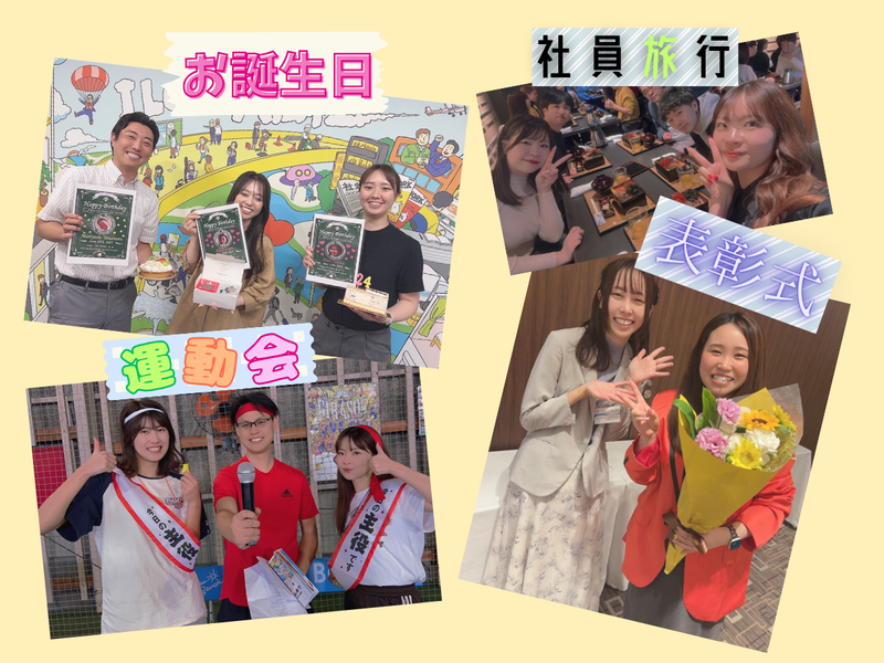 試用期間あり 試用・研修期間:1~5ヶ月 試用・研修期間の条件:本採用と同じ 試用期間は、お互いがこの会社で成長できると感じ 長期的に働けるかを見極める大切な期間と考えます。 実務が完璧でなくても、 重要なのは目標に向かって努力できるか。 営業と異なり、内勤は数字で評価することができません。 営業の想いを形にする為に、時には枠を超えて行動し 自ら考え、成長し続ける姿勢が求められる事も。 組織ビジョンは「成長し続ける」 失敗から学び、成功を実感した時の達成感は大きいです。 試用期間を通じて成長を実感し 共に進んでいけると感じた時 それが次のステップへのタイミングです。