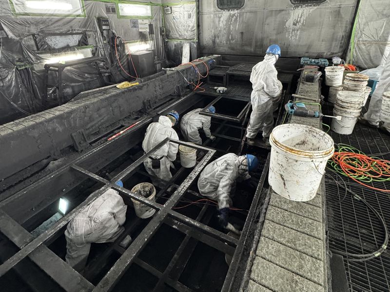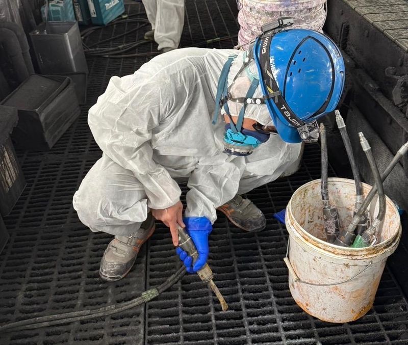 工場内塗装ブースの工具を使用したメンテナンス作業