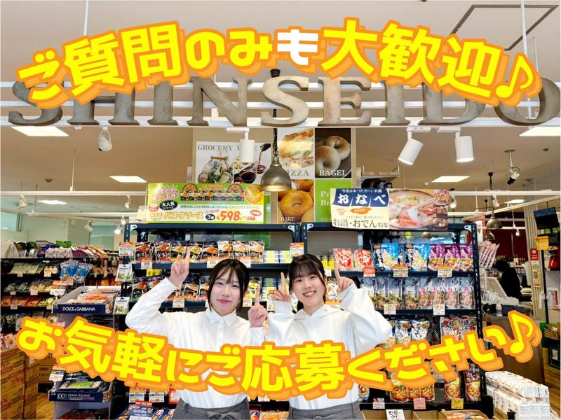 仕事内容 ✔15時~21時の週2~勤務 ✔髪色ネイルなど自由 *・。*・。*・。*・。*・。*・。*・。 【お仕事内容】 ・レジ ・品出し ・接客 などをおまかせします! 【御影新生堂ってこんなお店】 世界中のこだわり食品とお酒を扱う、 食品セレクトショップ「御影新生堂」♪ ドラマで見たことある!? ラーメンなどの韓国食品や、 SNS映え確実な カラフルで可愛い輸入お菓子、 お肉にかけるだけで シェフ級の味になる魔法の調味料、 そして世界中から集めた “これは飲んでみたい!”なワインまで。 見るだけでワクワクする、 美味しいものがいっぱい揃っています♪ テレビや雑誌でも多数紹介されるお店! 神戸を中心に 8店舗を展開する老舗企業です。 *・。*・。*・。*・。*・。*・。*・。 【新しいことを始めたいアナタに】 複数名の採用を予定。 同じ時期に入社のスタッフがいるので安心♪ まずは新生堂にどんな商品があるのか お店をぐるっと見学! なんとなくわかってきたら、 先輩と一緒にレジや品出しをお任せ! 社員staffと一緒に 売り場作りをお願いすることも◎ 「お客様に在庫の質問をされたけど どこにあるかわからない…」 なんてことがあれば スグに社員を頼ってください♪ 【staffの田中さんにインタビュー】 お店の全商品に社割が使えるので、 新商品が出るとついつい買っちゃいます。 これ食べたいな~と思いながら 品出しすることもしばしばあります。笑 最近ハマっているのはトリュフ味のポテチ。 ちょっとだけのつもりが 手が止まらないぐらい美味しいので 是非食べてほしいです。 家でも毎日食卓にはドレッシングとか なんらかの新生堂の商品が並んでいて、 ノー新生堂ノーライフです! *・。*・。*・。*・。*・。*・。*・。 【おしゃれも楽しめます】 清潔感があれば髪色や髪型、 ネイルも自由!(金髪のstaffも!) ネイルは、タッチパネル操作や 小銭の受渡しができる長さでお願いします! 【スタッフについて】 10~50代までの学生さん、 フリーターさん、主婦さんが活躍中! みんな気さくでざっくばらんな雰囲気♪ お米マイスターや ワインソムリエの資格を持つstaffもいて、 美味しいもの情報にはみんな目がないです。 「これ食べたことある?」 「最近○○流行ってるよね」と なんでも気軽に話せる関係性です♪ *・。*・。*・。*・。*・。*・。*・。 【まずはお気軽にご応募ください】 「どんなお店か見てみたい」 「他のバイトと迷っている」 「まずは話を聞いてから決めたい」 「とりあえず応募」そんな方も大歓迎! このページをスクショしておいて 後からの応募や友達同士の応募もok! 【アクセス抜群!】 京阪「天満橋駅」東改札口~直結 地下鉄谷町線「天満橋駅」北改札2番出口~直結