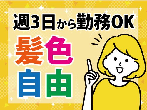 書類選考なし!入社日相談OK! 従業員割引もあり!WワークOK! 髪色自由!週3日~勤務OK!