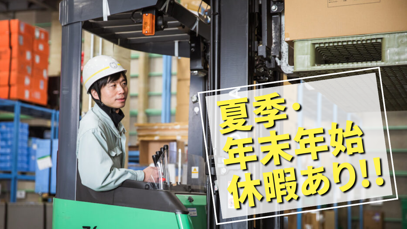 仕事内容 ******************** フォークリフトスタッフ大募集! ブランクのある方も大歓迎です! 皆でしっかりサポートをするので ご安心ください! 日勤のみ! さらに日曜・祝日・隔週土曜休みなので 私生活も充実させたい方にもピッタリ◎ GW・夏季・年末年始の連休もあるので 趣味や旅行などリフレッシュもできます♪ 家族サービスの時間や趣味を楽しむ 時間など、オフの時間も確保出来ます! ******************** 【仕事内容】 ・入出庫や格納作業、検品 顧客管理をお願いします 【1日の流れ】 ■検品・入庫 状態検品などお預かりした 商品や貨物の確認 確認後、保管場所へ格納 ↓ ■保管 各種要望に合わせて お預かりした商品・貨物の在庫 ロット・ロケーションなどの管理 ↓ ■ピッキング 倉庫内の商品や 貨物の出荷に向けて 指定の品を支持された数を用意 ↓ ■梱包 出荷する貨物を指示書と 照合しながら梱包実施 商品検品、シール貼り、値札付け 組み立て、荷札貼りなどの各種作業も対応 ↓ ■仕分け 梱包された荷物を分類し、 配送先やトラック単位に荷揃えを実施 (正確に行うことで誤配送の防止に繋がる) ↓ ■出荷 トラックへ梱包した 商品や貨物の積み込み後 指定された時間に合わせて出庫 ◇当社の魅力 ・キャリアも磨ける環境 慣れてきたら、少しずつリーダーとしての 仕事もお任せしていきます。 スキルだけでなく、キャリアも 磨いていきたいという方大歓迎です! ・経験が浅い方やブランクの方も歓迎 入社後は、先輩がしっかりサポートするので 経験はあっても不安・・・という方も 安心してご応募ください! ◇社員の声 「お腹すいたよねー」 「今日は忙しかった?」 なんて、ちょっとした会話を交わしながら のんびりとした休憩時間を過ごしています! 仕事がある日も楽しく過ごせてますし 前職よりもお休みが増えたので 私生活が充実するようになりました!
