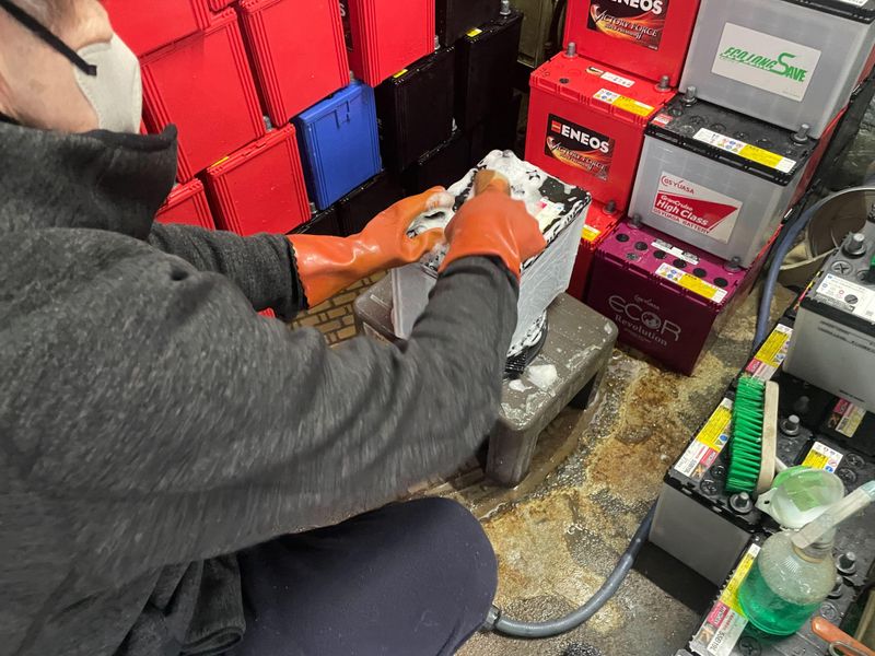 仕事内容 =================== 高時給でがっつり稼ぐ! 未経験でも安心◎洗浄のみの簡単作業! 午前のみ、午後のみなど短時間勤務◎ =================== 【仕事内容】 車のバッテリーを洗浄するお仕事です! <仕事の流れ> 10~25キロの車のバッテリーを運んできて 台の上に乗せる。 ▼ ブラシに洗剤をつけて洗う。 取れない汚れはシンナーで擦る。 バッテリーの接続部(突起)をブラシで 擦る。 *回転する台に乗せて洗うので 作業しやすいです。 *電動ブラシを使います。 ▼ 洗い終わったものは並べておく。 お任せする作業はこれだけ!! 誰でもできる簡単作業です♪ ゴム手袋をつけて作業を行うため 手荒れの心配もなし! 大体1時間に12個ほど洗って頂く イメージです。 \力作業は少しだけ!/ バッテリーを運ぶのは2mほどの 範囲内のため、長距離の移動はありません。 重量があるものもありますが、 慣れればスムーズに持ち運びできます◎ - 【仕事のポイント】 ◎高時給!時給1500円♪ ◎黙々集中できる簡単作業 ◎短時間勤務OK ◎髪色、服装、髭自由 ◎週末休みでプライベートも充実
