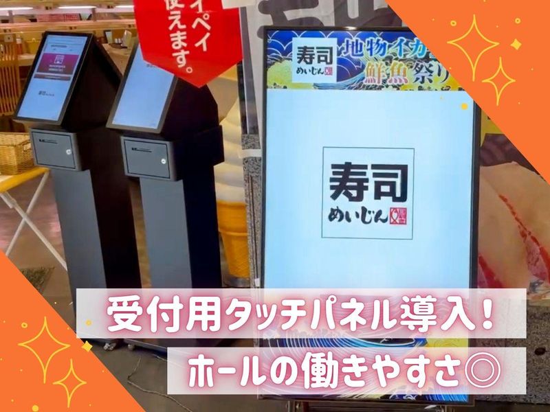 仕事内容 +・+・+・+・+・+・+・+・+・+ ✅GWまで(2ヶ月程度)の短期もOK❗ ✅5/2~5/6は時給+100円❗ ✅機械化されて業務負担も減りました❗ ✅1日3時間~、週2日~勤務OK! ✅シフトは1週間毎の作成! ✅プライベートも充実させながら働ける♪ ✅土日は嬉しい時給UP!! ✅髪型髪色自由でオシャレを諦めないで 働けます +・+・+・+・+・+・+・+・+・+ ================ 大分/地元めいじんグループ! ★働くを楽しむ!特典イロイロ★ ================ ◎出勤スタンプラリー 働いてポイントが貯まると、 お食事券プレゼント♪ ◎大入り制度 その日の売り上げ目標達成で 500円支給!(※5h以上勤務) ◎長期勤務でミニボーナス2回 3ヶ月勤務後 5,000円 6ヶ月勤務後 5,000円 ◎友達紹介制度 友達を紹介して勤務3ヶ月経過すると 賞金を支給★ ◎交通費規定支給 月額上限1万円 ◎社員割引あり グループの温泉施設にて平日入浴半額 食事代金10~15%OFF ================ 【 仕事内容 】 ~~~~~~~~~~~ <ホール業務> 〇ご案内 〇料理・ドリンクの提供 〇片付け 〇お会計 *タッチパネルオーダーで楽チン! <キッチン業務> 〇調理補助 〇仕込み 〇盛り付け 〇洗い物・清掃 寿司店で初めて働くという方でも、 安心して働くことができるように 一つ一つ丁寧に指導します♪ 〈 こだわり抜いた食材を使用 〉 ・朝〆鮮魚 大分市場にてプロが目利きした 朝〆鮮魚のみを厳選仕入れ! ・生簀活魚 回転寿司では他に類を見ない活魚寿司! 活きアジを中心にブリにヒラメに 真鯛にアワビなどをご提供! ・自家製玉子焼 完全無添加で化学調味料・保存料を 一切使わない安心・安全のこだわりの逸品! ・銀シャリ 大分県の契約農家より直送された県産米を使用! 【 寿司めいじん 】 _______________ 大分県全域に展開する『寿司めいじん』!! 厳選したこだわりの逸品をお客様へご提供! 確かな技術と鮮度、斬新な企画力から 生まれる商品が魅力です<゜)))彡