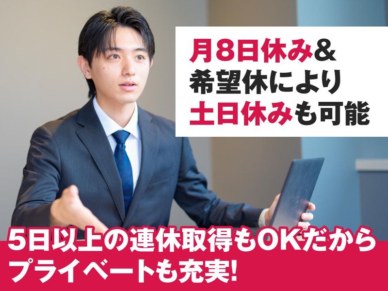 休日休暇 シフト制 ※月8日休、希望休により土日休みにすることも可能 年末年始休暇 GW休暇(5日) 夏季休暇(4日) 慶弔休暇(4日※取得条件あり) 有給休暇(10日) 誕生日休暇 産前・産後休暇※取得実績あり 育児休暇※取得実績あり ★5日以上の連続休暇の取得OK