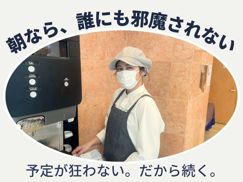 仕事内容 ―**――**求人POINT!**――**― ✅授業も遊びも、全部やりたい子こそ朝バイト ✅朝活バイトで生活リズムが整う! ✅週2・3日からOK!課題やインターンとも両立◎ ✅シンプル作業だから未経験でも始めやすい◎ ―**――**――**――**――**― 「正直、ここまで生活にハマると思ってなかった。」 今働いてる学生スタッフも、 最初はなんとなく応募しただけだったそうです。 でも始めてみたら、 “これ以外ムリかも”って思うくらい生活にちょうどよかったらしくて。 朝の4時間だけで終わるから、授業にも余裕で間に合うし、 終わった後にそのまま友達とカフェ行ったり、サークルに直行する日も。 しかも、早起きが習慣になってからは、肌のコンディションも安定。 “あれ、最近ちょっと調子いいかも”って日が増えたらしいです。 ――――――――――――――――――――――――――――――― ▼仕事内容 ホテルでの朝食準備・片付けを担当するお仕事です。 <具体的には…> ・パンやおかずの盛り付け ・料理や食器の補充/片付け ・洗浄機での洗い物 ・食材の納品確認と発注チェック ・会場内の簡単な清掃 ★働きやすさの秘密 手順が決まっていて、流れは毎日ほぼ同じ。 「これやったら次はこれ」と進めていけるから、 バイト未経験でも迷いません。 しかも、調理スキルや専門知識はいっさい不要。 何か困ったときは、同じ時間帯にいるスタッフに すぐ聞ける安心感もあります。 ✨1日4510円・月9万円超えも可能✨  ̄ ̄ ̄ ̄ ̄ ̄ ̄ ̄ ̄ ̄ ̄ ̄ ̄ ̄ ̄ ̄ ̄ ̄ ̄ ̄ 時給1090円+早朝手当150円で、1日4510円。 週2勤務でも月3.6万円以上、 週5日なら9万円超も目指せます。 さらにミニボーナス制度やインセンティブ支給もあり。 短時間で効率よく収入を得たい人にぴったりです。 【 応募方法 】 ✨直接採用担当とお話ししたい方 →電話での応募大歓迎! 076-405-1045 までお気軽にお問い合わせください! ✨【応募】ボタンから応募の方 →エントリー後、担当者からご連絡差し上げます。