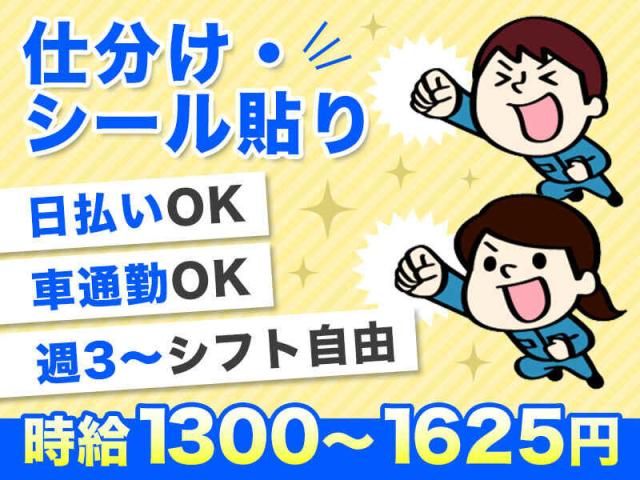 募集要項 職種 ピッキング作業 雇用形態 派遣社員 仕事内容 / ◎20~50代男女活躍中◎ 日本語話せる(N2以上)外国籍の方もOK 長期安定勤務できます!! \ 超有名スーパーマーケットへ納品する生活必需品の 仕分け、シール貼りなどの作業をお願いします。 <具体的には…> ・商品の管理(バーコードリーダーを使用した日付や在庫のチェックなど) ・商品に賞味期限シール貼る作業 ・出荷店ごとに仕分け作業 <扱う商品> スーパーマーケットで陳列販売されている 生活用品・食品・飲料 全般 特別な知識や経験は必要ありません! 少しでも興味がございましたらご連絡ください! ご応募お待ちしております◎ 《職場見学案内いたします》