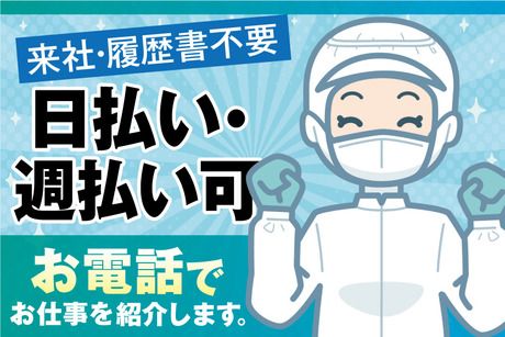 仕事内容 ■未経験大歓迎!食品工場での加工や盛付け作業 自社の食品工場内で、業務用加工食品や 介護食、お中元お歳暮の食品の製造をお任せします。 <具体的には…> ★食材の冷凍・蒸す・型取り・巻くなどの加工作業 ★盛付けなどのライン作業 など 担当部門によって原材料など重量物の移動作業もあり(男性活躍中)。 未経験・食品製造が初めて、調理経験がない方も大歓迎♪ 活躍中のスタッフもほとんどが未経験からのスタート! 丁寧な研修もありますのでご安心ください。 ■勤務先は昭和50年設立の老舗企業!幅広い年齢層の男女活躍中! 旅館やホテルの厨房向けの業務用加工食品や 介護食、おせち・手毬寿司などの製造など 幅広い食品製造を手掛けている企業様。 「旬の食材を使った美味しい料理を食べていただきたい」 という想いから日々、創作メニューや食品開発に力を入れており 大手百貨店や有名デパートとも取引を行っております。 年代問わず男女スタッフが活躍中! 気さくなスタッフが多く、困ったことがあれば しっかりサポートしてくれる環境です。 調理工程のコツなどお教えするので、 未経験でもスグに慣れていただけますよ◎ ■17時過ぎに終了◎平日のみ&週3~5日で相談OK! 週3日~希望の働き方が可能です♪ 「フルタイムでしっかり安定収入が欲しい」 「週3日勤務でゆとりをもって働きたい」 「別の仕事とかけもちしたい」 など、お気軽にご相談ください。 17時過ぎに終了なので、 家事や育児、プライベートとも無理なく両立ができますよ! ■来社&履歴書不要!電話でお仕事のご紹介が可能です。 応募後、まずはこちらから電話でご連絡いたします。 その際にご都合が良い日時をお伝えいただければ その日時に改めて電話で連絡いたします。 家事の合間や仕事が休みの日など、 あなたの都合のよいタイミングをお伝え下さい。 お電話で業務内容の説明やあなたの希望をおうかがいしたうえで 希望のお仕事をご案内いたします。