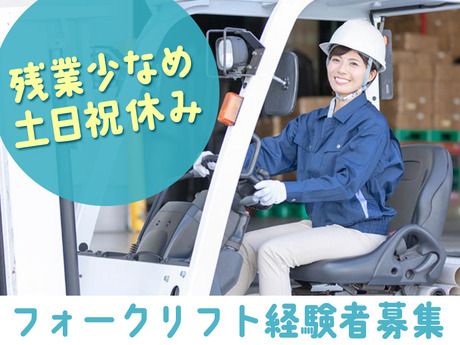 《フォークリフト実務経験者》16時定時で残業少なめ/土日祝休み/給与前払いOK/女性活躍中