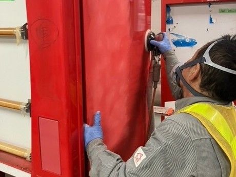 自動販売機の塗装・研磨作業