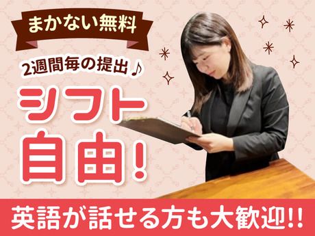 英語が話せる方大歓迎!!20代女性活躍!映えるまかないが無料!時給1450円スタート!