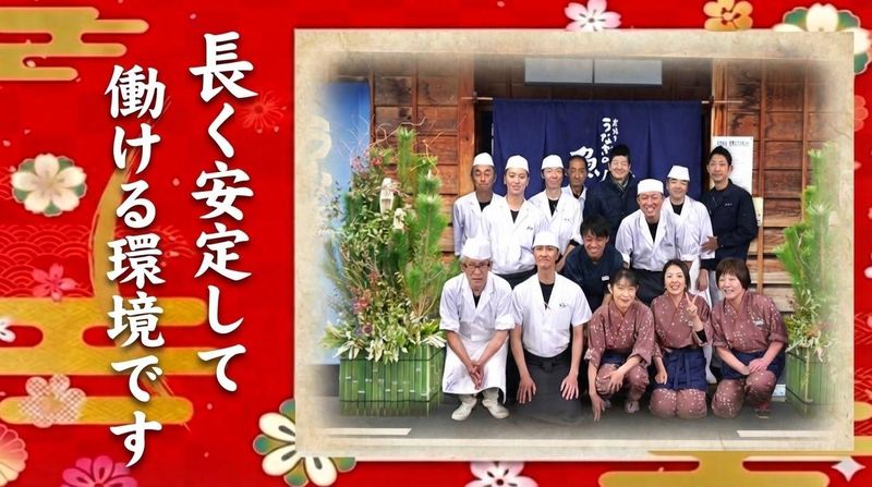 求めている人材 ✨学歴・資格・職歴は一切問いません ✨未経験からスタートした若手スタッフも活躍中 …………………………………………………… 【 応募条件 】 ●普通自動車免許(AT限定可) …………………………………………………… 【こんな方にお勧め】 ●一から専門技術を学びたい ●飲食の経験を次に活かしたい ●調理補助からプロを目指す ●安定企業で長く腰を据える ●20代〜50代と幅広く活躍中 ●「うなぎ職人」に興味がある ⭐経験者・未経験者ともに歓迎⭐ ※業務上、日本語でのコミュニケーションが必要となります …………………………………………………… 【年齢にとらわれない職場環境】 30代・40代・50代まで、さまざまな 世代のスタッフが活躍しています。 未経験から始めた若手も、 今では立派な戦力として 現場を盛り上げています。