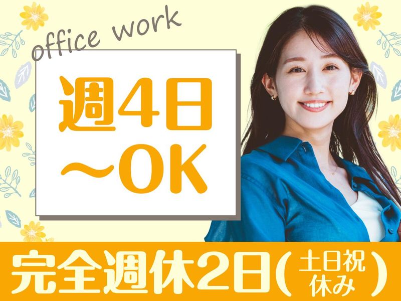 仕事内容  ̄ ̄ ̄ ̄ ̄ ̄ ̄ ̄ ̄ ̄ ̄ ̄ ̄ ̄ ̄ ̄ ̄ 土日祝休み&残業ほぼなし! 週4日~勤務可能★ 家庭やプライベートと両立しやすい◎ __________________ 経理業務および一般事務業務をお任せします。 正確なコツコツ作業が得意な方、 数字を扱うのが好きな方にぴったりのお仕事です。 未経験からでも学べる環境です♪ もちろん経験がある方は即戦力として活躍できます! 【具体的な業務内容】 ● 日常経理業務 ・仕訳入力(会計ソフトへの入力) ・請求書の作成、支払管理 ・入出金管理、入金確認、振込業務 ・経費精算処理 ● 決算・税務補助 ・法定調書、支払調書の作成補助 ・年末調整や税務関連業務のサポート ● その他事務・総務 ・電話・来客対応 ・給与計算や入退社手続きなどの総務補助 ・銀行や郵便局への外勤(社用車または公共交通機関) ※入社後は先輩スタッフが丁寧にフォローしますのでご安心ください。 ▼こんな方大歓迎です  ̄V ̄ ̄ ̄ ̄ ̄ ̄ ̄ ̄ ̄ ̄ ̄ ■未経験から挑戦したい方 ■経験を活かして働きたい方 ■しっかり稼ぎたい方 ■安定して長く働きたい方 ■ブランクがあり、仕事復帰したい方 など