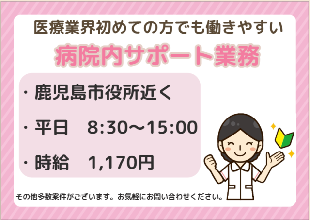 資格・経験 無資格未経験OK! 未経験から始められる病院でのお仕事です! 家事や育児との両立中の方大勢活躍中です♪