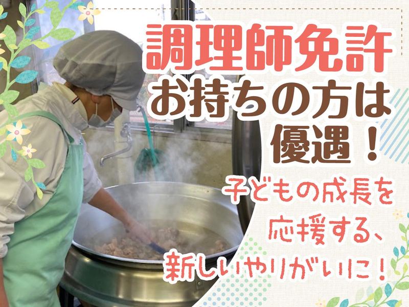 仕事内容 ✅安定の固定給+賞与年2回! ✅夕方前の15:45終業で、のんびり帰宅♪ ✅土日祝休み&学校と同じ長期休暇あり ✅ご家庭の「調理スキル」が仕事になる✨ ✅グループ経営の施設でお得な社割も! 「そろそろフルタイムで働きたいけど、 家族との時間も大切にしたい」 そんな願いにピッタリの働き方! 朝は少し早い6:45スタート。 その分、終わるのは15:45と 夕方前には帰宅できるから、 夕飯づくり前のちょっとした リラックスタイムも作れますよ♪ ┈┈┈┈┈┈┈┈┈⿻*.· \お任せする仕事内容/ ■野菜の洗浄・カット ■調理補助(煮る・焼く・和えるなど) ■おかずの盛り付け・配膳準備 ■食器・調理器具の洗浄 ■厨房内の清掃・片付け ⭐献立は市で決まっています⭐ メニューを考える必要なし! 健康的な献立が決まっており、 レシピ通りに作るだけでOK。 気になるメニューがあれば、 ぜひご家庭でも作ってみてください♪ ┈┈┈┈┈┈┈┈┈⿻*.· ====================== 「いつもの家事」が、誰かの力に ====================== 特別な資格は持っていなくても大丈夫。 ご家族のために作ってきた料理の経験が、 そのまま活かせるお仕事です。 伸び盛りの子ども達に 栄養満点の給食を届けるため、 沢山の食材を切ったり煮たり…。 量自体は多いですが、 調理師リーダーを中心に、 他スタッフと協力しながら 進めていけるので、ご安心ください! ====================== 家庭と両立しながら、安心の月給制! ====================== 時給制のパートとは違い、 毎月決まったお給料が入る 「契約社員」の募集です。 夏休みなどの長期休暇中も お給料の心配をせず、 心にゆとりを持って休めます。 頑張った分は年2回の賞与で還元! 家計にプラスしたり、 自分へのちょっとしたご褒美にも♪