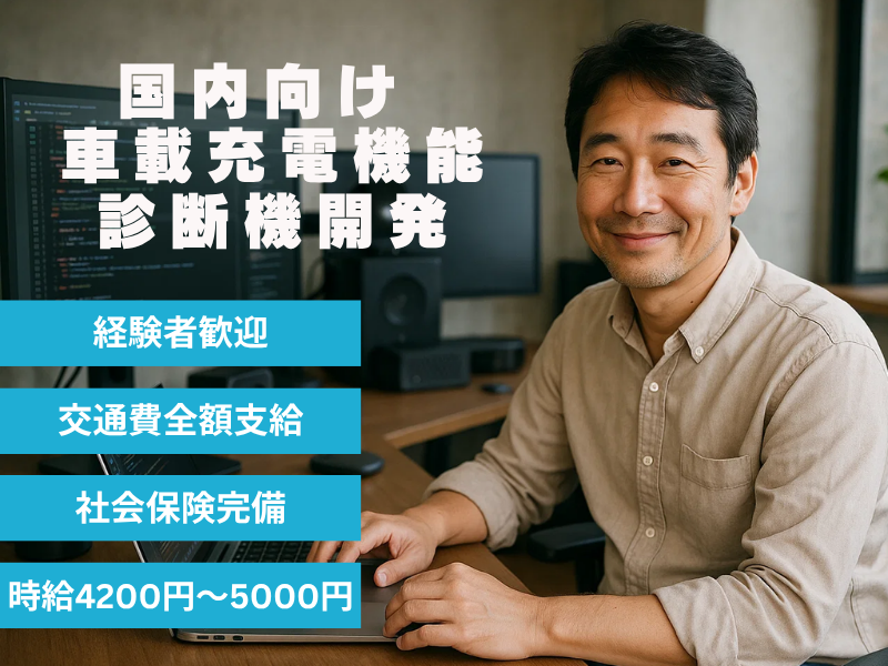 仕事内容 EV/HEV向けの車載充電機能開発プロジェクト において、 OBC(オンボードチャージャー)とDCDC間の通信設計および 診断機能仕様検討を担当いただきます。 車載ECU開発やシステム仕様設計の経験を活かし、 次世代充電システムのアーキテクチャ設計フェーズ に参画できるポジションです。 ■主な業務内容 OBC(オンボードチャージャー)のシステム仕様設計 OBCとDCDC間のCAN通信設計、メッセージ仕様検討 診断器リクエスト~レスポンス処理のシーケンス設計 タイムコンストレイントを考慮した制御ロジック設計 サブマイコン制御(ルネサスU2B6)におけるリプロ検討 設計ドキュメント作成、レビュー対応、技術調整 ■開発環境 マイコン:ルネサス U2B6 通信方式:CAN通信 言語:C(開発想定) 使用ツール:システム設計関連ドキュメント、 各種CAN解析ツール チーム構成:3名(少数精鋭体制)