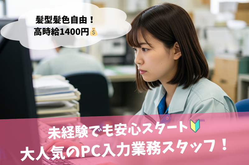 ✅寮費無料(会社規定有り✅高時給1400円✅PCスキルUP✅無料送迎バス有り✅ 給与前払いOK✅バイク通勤OK✅髪型/髪色自由✅即日払いOK✅交通費支給