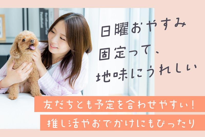 職場環境 【女性目線の安心環境】 清潔感のある落ち着いた雰囲気が魅力です。 社長も女性だからこそ、 悩みを相談しやすい職場◎ 【スタッフの特徴】 裏方のスタッフは20~40代が活躍中です! また、近隣に住んでいる方も多く、 地元トークで盛り上がっています◎
