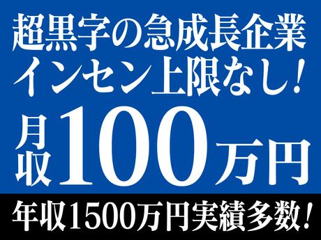 月給350,000円以上 給与 月給 35万円以上 (一律手当を含む) 月収100万円超の先輩多数! 月給35万円~+毎月インセン+特別報酬+交通費+各種手当+役職手当 ※試用期間3カ月。(期間中の待遇変更はありません) ★インセンは上限なし、月収100万円超の先輩実績多数 ★子ども手当あり(1人につき毎月1万円/規定あり) ★誕生日手当あり(規定あり) 交通費:交通費支給 交通費規定内支給 【給与例】 給与例 【初年度の年収例】 500万円~2000万円 【年収例】 ・営業2年目のAさん:年収1,500万円 ・リーダー職のBさん(3年目):年収1,800万円 ・マネージャー職のCさん(4年目):年収2,000万円 ★1年目で年収1000万円超の実績あり! 給与明細に驚く社員も♪ ★先輩たちは約6~7割が 月収100万円超を達成しています!