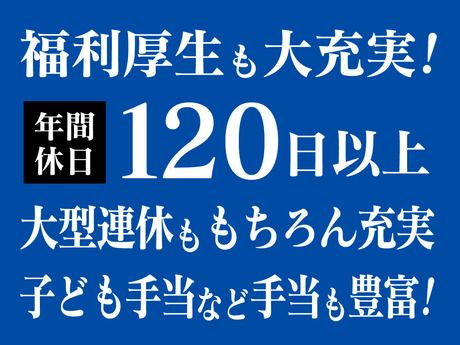 休日 【年間休日120日以上】 完全週休2日制(土日) 祝日 大型連休あり GW休暇 夏季休暇 冬期休暇 慶弔休暇 年次有給休暇