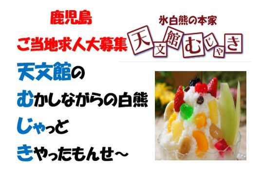 ■応募後の流れ 【選考について】 面接(予定1回) 【応募について】 ここまでお読みいただき、ありがとうございました。 まずは「応募」ボタンを押して応募画面へ。 氏名等を入力して簡単に応募できます。 WEBは365日、24時間受付中! 応募受付完了次第、担当よりご連絡します。 担当:久保・前田 【天文館むじゃきについて】 鹿児島飲食業界の名門老舗として、創業以来、地元の皆さんだけでなく、県外の方からも愛されるお店を目指しています。 鹿児島名物として有名なかき氷「白熊」の販売、飲食店事業を展開。 設立:昭和21年 従業員数:100名(本店には約30名在籍) 【こんな求人をお探しの方にもおすすめ】 ・カフェや喫茶店、レストラン、パン屋、ベーカリー、洋菓子店などで調理補助パート、ホールスタッフ、洗い場、皿洗い等の求人をお探しの方にもオススメ ・ハローワークでお仕事をお探しの方もOK! ■応募受付電話番号 099-222-6904 ■個人情報の取扱いについて ご提供いただいた個人情報は、採用選考及び結果等の通知・連絡の為に利用いたします。 それ以外の利用目的または法令等に基づく要請の範囲を超えた利用はいたしません。