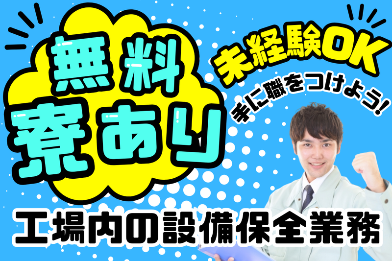 仕事内容 【 応募から2週間程度で内定可能! 】 《 ここがポイント! 》 ●高月収28万円以上可能 ●嬉しい無料の寮完備 ●土日休みでプライベート抜群 ●幅広い年齢の男性活躍痛 ●未経験からのチャレンジOK 《 木槌でかる~く叩くだけ! 》 自動車や農業用トラクターの エンジン部品を製造する工場! 工場内にある機械の設備やトラブルなどを 対応する保全業務のお仕事です。 トラブル対応ではどこに不具合箇所があるのかを調査し、 それに応じた部品の調整・修理・交換を行います。 自社で制作した設備ではない場合、 設備メーカーに問合せをして対応することもあります。 また、トラブルが起きないように定期的に点検も行います。 機械を使って作業する方が円滑に 仕事を進められるようにサポートします。 - 《 正社員登用の実績あり! 》 正社員登用の実績あり! 「将来は正社員で安定して働きたい」 そんな方におすすめの求人です! 過去に派遣社員から正社員になった先輩も就業中♪ スキルを身につけて安定した収入をゲット! - 《 家賃は0円!寮ありのお仕事です 》 家具家電つきの1R寮を完備しています。 職場までも徒歩圏内なので通勤も楽にできます。 寮の中には食堂があり、 自炊が苦手な方でも快適にすごせます! また、車の持ち込みも可能です。 - 《 資格は不要!未経験OK! 》 未経験からスタートした40代の方も活躍されています! 保全業務は経験者のみという募集が多いですが、 こちらの工場では先輩社員が一から教えてもらえます。 資格取得補助もありますし、経験を積んで正社員を目指せる♪ 慣れるまでマンツーマンで先輩スタッフが指導します! - 《 先輩から一言! 》 ◆スタッフYさん(男性:28歳) 1年3ヵ月前入社 設備保全の資格やスキルを身につけることができると聞き、 こちらのお仕事を紹介されました。 工場でのお仕事も初めてでしたが、 現場スタッフが親身になって作業を教えてくれるので、 すぐに作業を覚えることができました。 元々正社員希望で探していたこともあり、 半年後には正社員に昇格し、 現在も正社員として働いています。 工場内スタッフも穏やかなスタッフが多く、 和気あいあいにお仕事が出来ています。 ぜひ一緒に働きましょう!