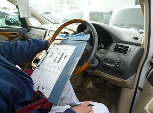 オークション会場での車両受入・装備チェック