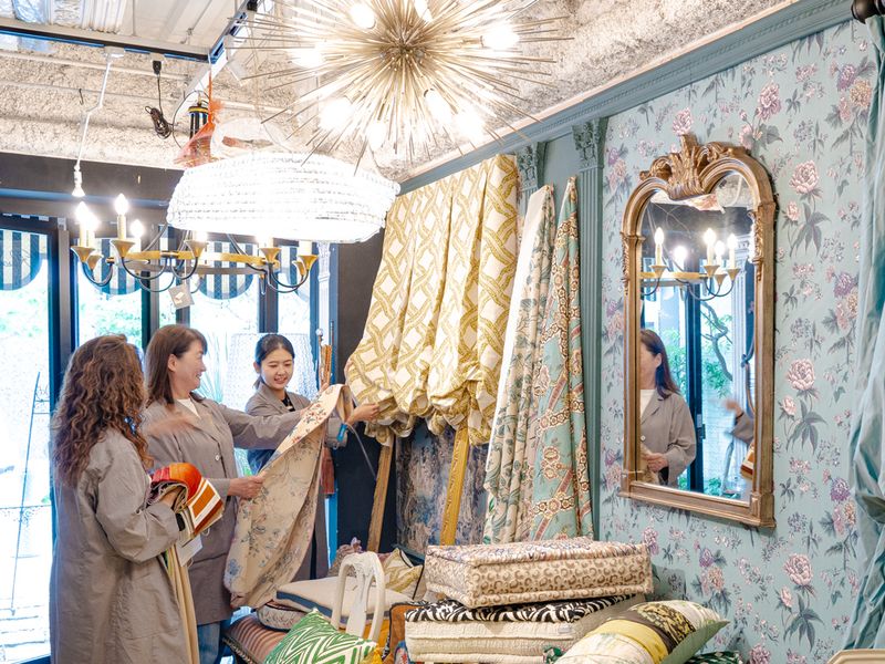 内装業の枠を超え、装飾に特化した空間づくりを行っており、ファブリックや壁紙を軸としたデザイン提案が強み