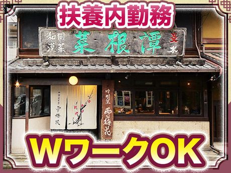 仕事内容 夕方~ディナータイムで働く接客のお仕事! \学校・遊び・バイト!全部応援します/ 授業・ゼミ・サークル・部活・就活などの 学校行事から遊びまで、忙しい学生さんも 放課後や空きコマなどスキマ時間でOK! 稼ぎたい方には、最大限稼げるシフトを提案! \この求人のメリットをご紹介/ ●イチから教えるので未経験でも安心 ●稼ぎたい月収に合わせてシフト調整 ●初バイト・久しぶりのパート復帰も歓迎 ●飲食経験者は能力に応じて時給優遇 \シフトの融通ききます/ ●扶養内勤務・ダブルワーク歓迎 ●遅出や早上がり・曜日指定も応相談 ●連休やGW・夏休みも入れる方は積極採用中 ●週1日~OK ●シフトの強制・無理なお願いはしません ●原則シフトカット無しで安定収入 ●ワンオペは極力させません \まかないをお楽しみに/ ●まかないは無料だから食費も節約できる ●短時間の勤務でも食べられる お仕事の詳細 (具体的には) ○ご案内・オーダーテイク ○料理・ドリンクの配膳 ○お会計・レジ ○バッシング(食器を下げるなど) ○テーブルセット(案内できる状態にする) ○洗い物・清掃など ブランド紹介 \雪梅花 菜根譚について/ 築100年の京町家を活かした 落ち着いた雰囲気の一軒家レストラン。 板の間や中庭を望む茶室など、 町家ならではの特別な空間で 本格的な中国家庭料理を楽しめます。 働いて良かったと思えるような経験や 働く楽しさを提供できるような お店づくりを心掛けています! 働くお店の雰囲気 スタッフ同士の仲の良さが自慢! 賑やかでフランクな仲間が沢山! 仕事はしっかり、他は仲良く オンオフのメリハリもばっちりな職場! 優しいスタッフが多いのも特徴の1つ! 「失敗したら怒鳴られたりしないかな」 なんて心配はご無用◎ 不安な方も安心して始められます♪ まずはご応募下さい 「通学途中で働きたい」 「大学以外の友達をつくりたい」 「まかない目当て」など 志望動機は何でもOK! 面接では 「テスト期間は休みたい」 「サークルの固定日がある」 「イベント・旅行前に稼ぎたい」など 遠慮なく相談して下さい! - 面接には履歴書を持参下さい。 -