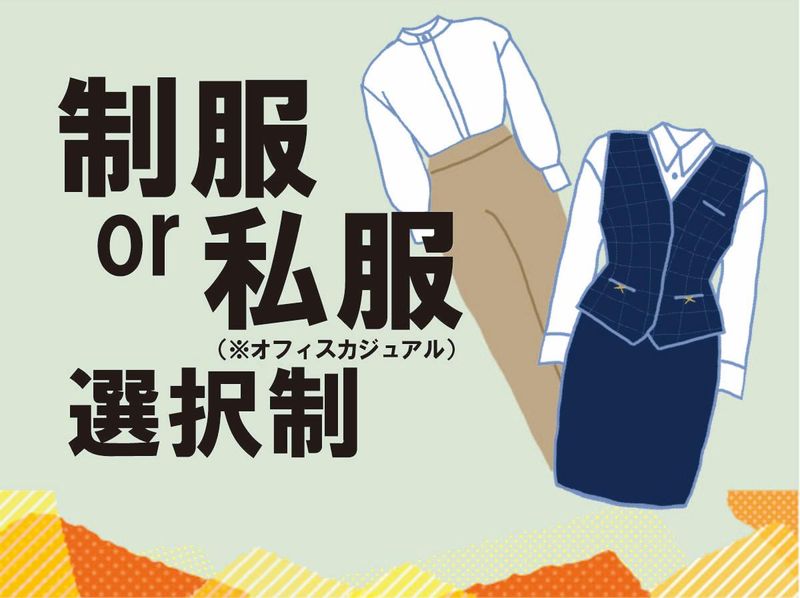 職場環境 ■勤務時の服装 制服か私服(オフィスカジュアル)の選択制(女性) スーツでのご勤務※ネクタイ不要(男性) 過度な染髪や華美なアクセサリーの装着やネイルはご遠慮いただいております 喫煙所:なし(敷地内全て禁煙) 快適な職場環境を維持するため、オフィス内は完全禁煙です