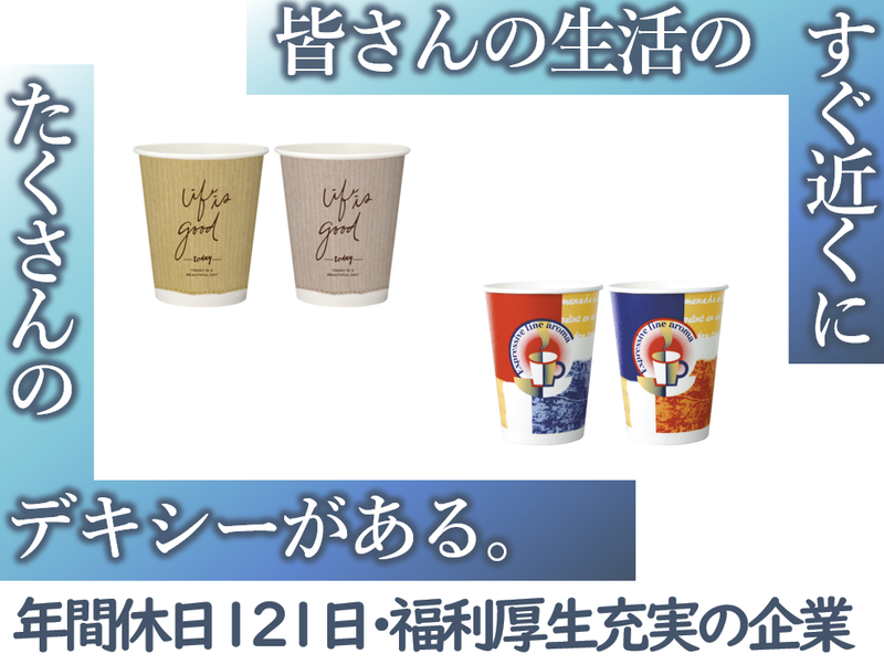仕事内容 ✨ アピールポイント ✨ ✅ 未経験から安心してスタートOK ✅ 暮らしを支える社会貢献性の高い仕事 ✅ 土日祝休み&年間休日120日 ✅ 1964年創業の安定企業で長く働ける ◤ 紙容器の製造って? ◢ 私たちの生活に身近な 飲料用紙カップなどを作る、 社会貢献性の高いお仕事です。 《 具体的な役割は? 》 皆さんが安全に使えるよう、 製造機械を操作したり、 製品にキズや色の違いがないか チェックしたりします。 《 誰のために? 》 様々な食品・飲料メーカーなどを通じて 日本中の人々の暮らしに役立つ製品を 届けています。 ◤ お仕事内容 ◢ 飲料カップなどを作る 製造機械のオペレーター業務です。 【 主な業務 】 ① 機械の操作  ̄ ̄ ̄ ̄ ̄ ̄ ̄ 紙容器を製造する機械の操作や監視、 簡単な調整作業などを行います。 ② 品質検査  ̄ ̄ ̄ ̄ ̄ ̄ 完成した製品に、 微妙な色合いの違いや 小さなキズがないかなどをチェックします。 ③ その他付随業務  ̄ ̄ ̄ ̄ ̄ ̄ ̄ ̄ ̄ 機械の簡単な不具合対応や、 その他製造に関わる サポート業務をお任せします。 【 イメージとの違い 】 「工場の仕事=単調作業」 そう思われがちですが、 高品質な製品をつくるための 機械の微調整や細かな品質チェックなど、 実は、集中力や工夫が活きる 奥深い仕事なんです! ⭐ 1日のスケジュール例 ⭐ ※日勤の場合 【08:00】出社・朝礼 └ 前シフトからの引継ぎ 【08:30】担当機械のオペレーション業務 【12:00】お昼休憩 ☕ 【12:45】午後の業務開始 └ 製品の品質検査など 【16:00】業務まとめ・日報作成 【16:45】退社 └ 次のシフトへの引継ぎ ※1週間ごとの交替制勤務です。 ⭐ キャリアアップについて ⭐ ◎ 成長支援制度 経験は一切不問! 先輩社員が丁寧に指導するので、 製造業が初めての方もご安心ください。 ◎ 評価制度 日々の頑張りは、 昇給や賞与でしっかりと評価・還元します。 ◎ キャリア事例 現場のリーダーや管理職など、 希望や適性に応じた ステップアップも目指せる環境です。 ◎ サポート体制 家族手当や社宅制度、退職金制度など… 生活を支え、長く安心して働ける 福利厚生が充実しています!