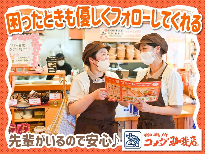 求めている人材 <春から大学生の方も大歓迎!> ・未経験歓迎! ・長期歓迎! ・大学生活躍中! ・Wワーク・扶養内勤務もOK! ・フリーター歓迎! ━━━━━━━━━━━━━━━━━━━ コメダ珈琲では、年齢や経験に関係なく、 スタッフ同士で声をかけ合いながら 働いています。 初めてのアルバイトでも、 わからないことはその場で すぐ聞ける雰囲気です。 忙しいときほど「ありがとう」が飛び交う、 あたたかいチームなのもこのお店の魅力。 同世代の仲間も、経験豊富な先輩も、 みんなで成長を応援してくれます。 人間関係のよさも、 長く続けやすいポイントです。 笑顔でいきいき働けるのも コメダ珈琲ならでは。 シニア世代のスタッフも多数活躍しており、 仕事終わりに「今日もお疲れさま」と 声をかけ合ったり、 ちょっとした世間話を 楽しんだりする時間も 日々の楽しみのひとつです。 落ち着いた店内で、 お客様との会話を楽しみながら、 地域とのつながりを感じられるのも魅力。 誰かと関わりながら過ごす毎日が、 自然と元気につながります。