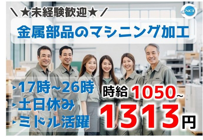 仕事内容 【マシニング加工スタッフ】 ◎工場内で下記のお仕事をお願いします! ●小型金属部品のマシニング加工 (金属に穴を空けたり、削ったりする作業です) ※基本立ち作業です。 ※未経験の方でも一からしっかりと指導します! ○意外とカンタンなマシニング加工! 基本は機械に部品をセットしたら機械が自動で加工してくれるので、加工が終わったら部品を取り出して新しい部品を入れるだけ!! 〇準夜勤専属で土日休み!基本的には残業もありませんのでプライベートの予定も立てやすいです! 22時以降は時給25%UPです! 〇食堂、更衣室、休憩室完備♪喫煙室のありますので、ご自由に使用OK! お昼のお弁当も注文することが出来ますよ! ===ここもチェック!=== 〇長期 〇未経験OK 〇ブランクOK 〇フリーターOK 〇U・Iターン歓迎 〇第二新卒歓迎 〇交通費支給 〇車通勤OK 〇40代以上応募可 〇50代以上応募可 〇60代以上応募可 〇社会保険完備 〇正社員登用あり 〇各種手当あり 〇健康診断あり(年1回/会社負担) =================