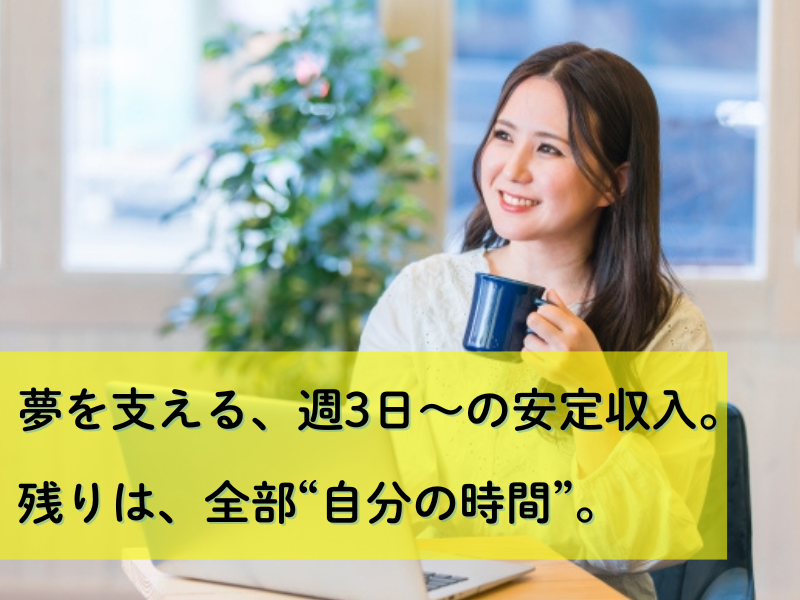 固定時間制 勤務時間詳細 ✨勤務時間:10:00~15:00  ̄ ̄ ̄ ̄ ̄ ̄ ̄ ̄ ̄ ̄ ̄ ̄ ̄ ̄ ̄ ̄ ̄ ̄ 時間キッチリ!残業はほぼありません 家事を終えてからの10時スタート ✨週3日~勤務OK  ̄ ̄ ̄ ̄ ̄ ̄ ̄ ̄ ̄ ̄ ̄ ̄ ̄ ̄ ̄ ̄ ̄ ̄ 勤務曜日の相談は気軽にOK! 「この曜日に働きたい」など ご希望には柔軟に対応します◎ 私生活×仕事が両立しやすい環境で、 みんなノビノビ働いています! 週3日から始めて慣れてきたら、 週4、5日と増やしていくのもOK◎