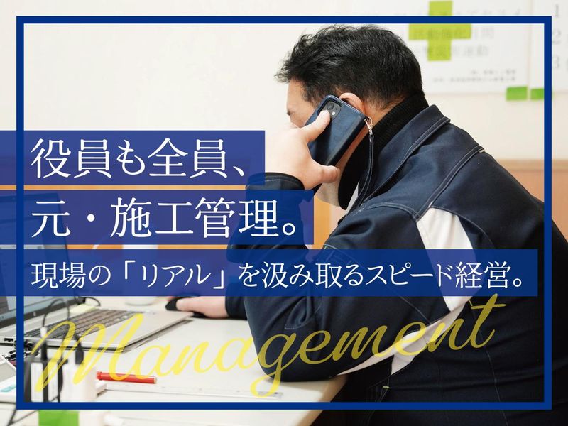 職場環境 社長をはじめ経営陣全員が元施工管理。現場の状況や苦労を理解しているからこそ、現場との距離が近く、判断が早いのも大きな特徴です。 また年齢や性別ではなく「現場をどれだけ円滑に回せたか」が当社の評価基準。実際に所長候補として活躍する女性スタッフもいます! 喫煙所:なし(敷地内全て禁煙)