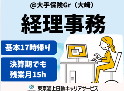仕事の内容 \残業少なめでムリなく両立!/ ◆残業は決算期でも月15時間まで ◆普段は基本17時で帰れます@大崎駅チカ 【基本情報】 雇用形態:派遣社員 雇用期間:長期(3カ月以上) └ 3月~開始日相談可能 就業時間:9:00~17:00(休憩60分) 【必須条件】 ◆経理事務のご経験ある方 ◆パソコン:基本操作(入力修正~グラフ) 【お仕事内容】 ・出納業務 ・会計システムへの登録 ・消費税サマリ~納税対応 ・ 帳票出力~ファイリング ・ 電話来客対応など 【環境面等】 ・大手保険グループの不動産管理会社 ・20代・30代・40代・50代の多い職場 └平均年齢40代!子育てに理解ある主婦(夫)が活躍中 ・穏やかで落ち着いた雰囲気 ・オフィスカジュアル内で服装自由 【福利厚生等】 ・ランチタイムは休憩スペース利用OK └お弁当持参OKです ・ベネフィット・ステーション ・社会保険完備 ・定期健康診断あり ・禁煙オフィス!煙苦手な方も安心 ・平日のみOK!土日祝休み ・年間休日120日以上&お休み相談可 └有給休暇、年末年始休暇など ○●嬉しいPOINTたくさん!●○ 履歴書不要!開始日相談ください/駅歩5分以内の駅チカ環境/ブランクOK!主婦・主夫活躍中/平時は残業月5時間以内!基本17時退社○