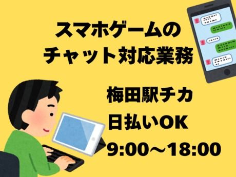 日払◎梅田◎電話なしでコツもく作業《スマホゲームのデータ引継ぎ・設定方法のチャットお問合せスタッフ》