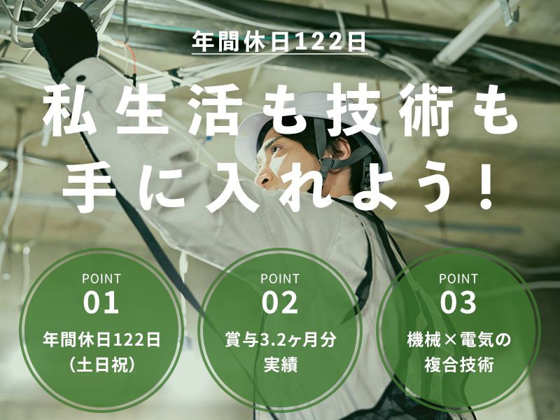 【年休122日】マンツーマン指導で安心。地域インフラを支える電気工事士