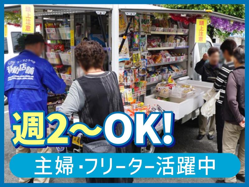 仕事内容 ✧ 普通免許(AT限定)でOK!未経験歓迎! ✧ 週2日~OK!がっつり週5日勤務も歓迎★ ✧ 主婦・ブランク明け・中高年の方も活躍中 ——・——— ・ ✦ ୨୧ ✦ ・——— ・ —— 実店舗への来店が困難な組合員様のために、 近隣地域を移動販売車(軽トラック)で 巡回する、コープこうべのサービスです。 <お仕事内容> まずはコープ桜塚の店舗で 移動販売用の軽トラに商品を積み込みます。 その後、組合員様との約束の場所に、毎週 同じ曜日・同じ時間に訪問し、商品を販売。 簡単なレジ操作も行っていただきます。 最初は先輩社員の横乗りからスタート! お仕事の流れはもちろん一から ご説明するので未経験の方でも安心◎ 地域のみなさまの快適なお買物を サポートするお仕事です♪ レジ操作をしながら、 組合員さんと何気ないお話をすることも。 毎週の移動スーパーを楽しみにして いらっしゃる方もいます◎ 「いつもありがとう」「待ってたよ」など 温かい言葉もいただける、 やりがいたっぷりのお仕事です。 ——・——— ・ ✦ ୨୧ ✦ ・——— ・ —— <シフトは…> 月~土曜日の間で週2~5日で調整OK! 家庭と両立する主婦さんや、 こどもの手が離れ久しぶりの仕事復帰の方、 がっつり働きたいフリーターさんなど 幅広く活躍中です! 普通免許さえお持ちであれば皆さん大歓迎! まずはお気軽にお問合せください◎ ⏩078-856-1234(平日9:30~17:30)