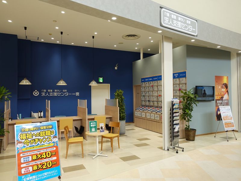 勤務地: 介護・看護・障がい・保育 求人支援センター一宮 愛知県一宮市木曽川町黒田字南八ツケ池25-1 イオンモール木曽川内