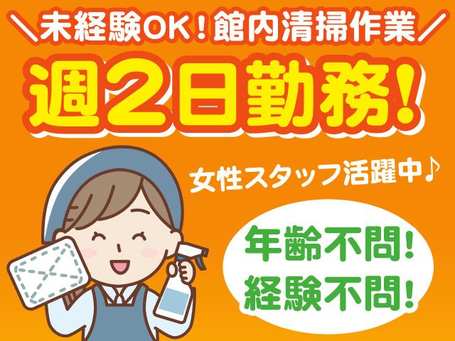 仕事内容 館内の清掃スタッフを募集中! 1回1.5時間勤務で無理なく働けます。 運動不足解消に!オススメです! /////////////////////////////////////////// ◎年齢不問! ◎未経験者大歓迎! ◎火曜・金曜の週2日勤務 ◎午前中1.5時間の短時間勤務 ◎Wワークにも最適 ◎ミドル・シニア世代の女性活躍中 /////////////////////////////////////////// 【主な作業内容】 〇店内の床清掃(モップ掛けやごみ拾い等) 〇拭き掃除 〇ごみの回収作業 〇水回り掃除など 難しい作業はありません。 ご家庭で行っているお掃除の延長でできる 軽作業です。 「Wワークをお探しの方」 「無理せずちょっとだけ働きたい方」 是非ご応募をお待ちしております。 ********************** 他にも勤務地いろいろあります! 自宅から通いやすい所や働きやすいシフトなど、 何でもお気軽にご相談ください。 あなたのライフスタイルにピッタリの勤務先を ご紹介いたします! **********************