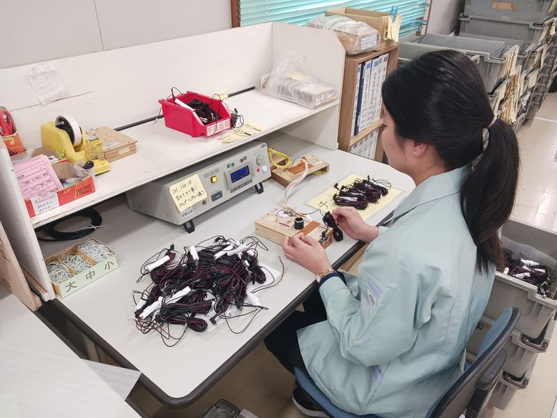 仕事内容 工具や機器、検査器具を使用して電気部品の製造・検査を行っていただきます。 【具体的には】 ■製造業務 〔部品準備依頼〕 図面から試作品を作るために必要な電線・部品等を拾い出し関連部署へ準備依頼 〔加工〕 ニッパー・ハサミ等の手工具やボタン操作による電動機器により電線やケーブルの加工 〔半田〕 半田こてや半田槽を使用した電線と部品の半田付け 〔圧着〕 圧着機を使用して電線に端子を圧着 〔組立〕 電線やケーブルにコネクタやラベル等の部品の組付け 〔連絡・問合せ〕 電話やメールで他部署へ図面不備や不具合内容等の連絡・問合せ ■検査業務 〔電気検査〕 専用機器と器具に製品をセットし電気を流して良品・不良品判定 〔配線検査〕 専用機器にて電線色の配列チェック 〔寸法確認〕 製品が図面の寸法通りにできているかをスケールにてチェック 〔部品確認〕 製品に図面記載の部品が使われているかをチェック 〔外観確認〕 拡大鏡やルーペにて製品の傷・汚れの有無チェック 〔検査書類作成〕 お客様に提出する簡単な書類の作成 〔梱包作業〕 一部製品においての簡単な梱包や箱詰め作業 〔連絡・問合せ〕 電話やメールで他部署へ図面不備や不具合内容等の連絡・問合せ ≪お仕事内容の特色≫ 試作・製造業務ではでは、営業経由でお客様からの試作品作製依頼に応じて、営業や図面作成を担当する技術部門等、他部署との連携により、試作品を完成させていきます。 その後のお客様の要望により量産品へとつながっていき、お客様の装置等へ組み込まれていくこととなります。 そのため、量産品への前段階として、問題点の洗い出しが重要になる業務となります。 量産品となった製品は同じ作業の繰り返しとなるため、同じ製品を同じ精度で作製するために、電動工具等を使用して治具作成を行うこともあります。 検査業務では、図面をもとに完成品と図面に不一致がないかのチェックを行います。 専用の試験機や器具を用いて製品に電気を流し、導通・耐圧・絶縁・瞬断といった外観では見つけることができない検査を行います。 試験機のOK/NG判定を確認し、良品と不良品を振り分けます。製品の種類によっては、カメラ画像による電線色の配列検査を行います。 カメラシステムが電線色の並びに対してOK/NG判定を行うため、その結果をパソコン画面上で確認し、良品と不良品を振り分けます。 その後、検査機器をパスした製品を図面をもとに完成品と不一致がないかのチェックを行います。 この検査をパスした完成品がお客様のもとへ納品されるため、完成品の寸法ミスや傷・汚れ等の見落としが、お客様の信用を失うことにもつながるため、良質な製品をお客様へ提供するための重要な業務となります。 それぞれ重要な業務とはなりますが、まずは、製品を作る上での基礎知識・技術を習得していただくために、先輩の指導のもと、電線の組立や加工作業に携わっていただき、その基礎をもとに段階を踏んで、検査業務にも携わっていただきます。 また、業務内容の習熟度に合わせて、電話やメールを使用した他部署への連絡や問合せ等の業務も発生いたします。 特別な資格等を必要としておりませんので、真面目に継続力をもってがんばっていただければ、誰でも一人前に作業ができる業務となっております。 世間一般に世代交代が難しくなっているこの世の中で、清住工場においてもその波が着々と押し寄せてきております。 そのため、未来を見据えて幹部を目指していただき、清住工場を支え、成長させていけるメンバーを探しております。 ≪職場の環境≫ ・座ってする工場内作業です。 ・分からないことを聞きやすい環境です。 ・女性が多く活躍中です。 ・工場内は冷暖房完備です。 ・残業が少ない環境です。 ・休みが取りやすい環境です。 ・人当たりが柔らかい人が多い職場です。 ・上司や先輩が意見に耳を傾けてくれるため、個々の意見が反映されやすい環境です。 ≪西田電気株式会社について≫ 愛媛県松山市(内宮町甲511番地1)に拠点を構える当社。ワイヤーハーネスや電線、ケーブル、電気部品の加工および販売を手掛けています。 ○主な魅力 1.西日本トップクラスの高品質な製品 2.日本でも屈指の幅広い設備を保有 3.半世紀を超える経験と実績 ○環境への取り組み ISO14001を取得し、環境保全活動を積極的に実施。省エネルギーやリサイクル活動を推進することで、地域社会への貢献も行っています。 ○地域密着と社会貢献 愛媛県を拠点に、地元企業として地域とのコミュニケーションを重視。ネプコンジャパンなどの展示会にも参加し、技術力を発信しています。