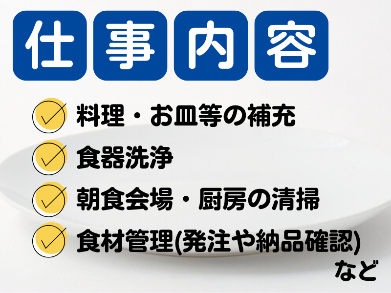 仕事内容 **――**求人POINT!**――** ✅ 朝の時間を有効活用できる“朝活パート” ✅ 週2・3日~勤務OK ✅ 未経験・ブランクOK (家事スキルがそのまま活かせる◎) ✅ 早朝手当ありで効率よく収入UP ✅ 配膳・会計なしのシンプル作業 ✅ 扶養内勤務OK ――**――**――**――**―― 朝だけ少し早起きして、 身体も気持ちもすっきり動き出す“朝活”を、 お仕事として取り入れてみませんか? 午後からの予定に全く響かないので、 無理なく続けられると 主婦さんに人気のお仕事です。 ▶仕事内容  ̄ ̄ ̄ ̄ ̄ ̄ ̄ ̄ ̄ ̄ ̄ ̄ ̄ ̄ ̄ 調理経験がなくてもできる、 シンプル&覚えやすい作業が中心です。 ✔ 朝食メニューの温め・盛り付け ✔ 料理の補充 ✔ 食器の片付け・洗浄 ✔ テーブル・会場内の清掃 ✔ 食材の発注/納品チェック など お客様が自分で取るビュッフェ形式のため、 複雑な配膳や会計対応は一切ありません。 まずは明るい挨拶からスタートできればOK! ▶朝活感覚で“健康習慣”が身につくお仕事  ̄ ̄ ̄ ̄ ̄ ̄ ̄ ̄ ̄ ̄ ̄ ̄ ̄ ̄ ̄ ̄ ̄ 早起きして少し身体を動かすと、 気分もスッキリ、生活リズムも整って 一石二鳥。 「午前中でもうひと仕事終わってる」 そんな達成感があり、 買い物・掃除・通院などの家事予定も ゆとりをもってこなせます。 ◎ 5:30〜9:30の4時間 ◎ 5:00〜10:00の5時間 → 週2・3日〜OKなので、体力に無理なく続けやすい♪ 午後はまるっと自由時間。 家族の予定に合わせやすく、 自分の時間も充実します。 ▶こんな方におすすめ!  ̄ ̄ ̄ ̄ ̄ ̄ ̄ ̄ ̄ ̄ ̄ ̄ ̄ ̄ ̄ ̄ ̄ ・朝の時間をもっと有効に使いたい ・生活リズムを整えながら収入も得たい ・短時間で効率よく働きたい ・家事や趣味と両立しやすいパートを探している ・ブランクが気になるけど、入りやすい職場がいい 【応募方法】 ✨直接採用担当とお話ししたい方 →電話での応募大歓迎! 092-475-1045 までお気軽にお問い合わせください! ✨【応募】ボタンから応募の方 →エントリー後、担当者からご連絡差し上げます。 ご連絡が取れる 電話番号またはメールアドレスの 記載をお願いします。