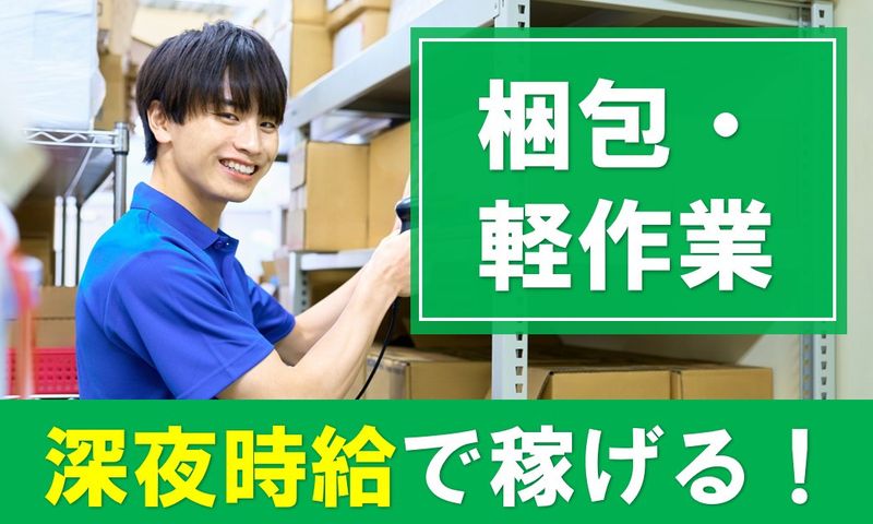 【応募資格】 【あなたのペースで成長できる環境】 あなたが新しい環境で安心して働けるよう、丁寧な研修とサポート体制を整えています。 未経験の方でも始めやすいよう、作業はシンプルで手順が決まっており、先輩スタッフがしっかりフォロー。一つひとつ覚えながら、自分のペースで成長できる環境です。 ■必須条件 ・高校生の方のご応募は受け付けておりません ■優遇条件 ・夜勤での勤務経験がある方 ・倉庫作業や梱包作業の経験がある方 【こんな方に向いています】 ・未経験からシンプルな作業で稼ぎたい方 ・深夜帯にしっかり働いて高収入を得たい方 ・安心して長く続けられる職場を探している方 【メリット】 #主婦・主夫歓迎 #新卒歓迎 #未経験者歓迎 #学歴不問 #フリーター歓迎 #経験者歓迎 #週払いOK #社会保険完備 #ブランクOK #交通費支給 #履歴書不要 #第二新卒歓迎 #40代も応募可 #バイク通勤OK #車通勤OK