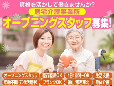 仕事内容 【業務内容】 ●訪問介護スタッフ 主に精神に障がいを持った方に対し生活の支援相談を行います。 利用者宅を訪問し、介護業務(身体介助・生活支援など)を行います。 ※最初は同行訪問するのでブランクのある人も安心です。 ●身体介護…食事介助・排泄介助・入浴介助・服薬介助 ●生活介護(生活支援)…食事準備・洗濯・買物・薬の受け取り・掃除、等 【ここがポイント!】 ●8月オープンの居宅介護事業所です! ●オープニングスタッフの魅力は 何もかもが新しい! 一緒に「はじめまして」からスタートできます。 先輩・後輩の垣根なく、 一緒に楽しく働きましょう♪ ●訪問介護ならではの魅力 1.自分のライフスタイルに合わせて 自由に働ける! 2.利用者一人ひとりに寄り添える。 やりがいが大きい。 3.人間関係のストレスが少ない。 4.幅広いスキルがみにつく! 【担当エリア】 ・水呑町、箕沖町 ・箕島町、新涯町 ・瀬戸町 ・郷分町 ・手城町 ・鞆町 ・御幸町 ・西深津町 ※ご希望の勤務エリアをご相談ください。