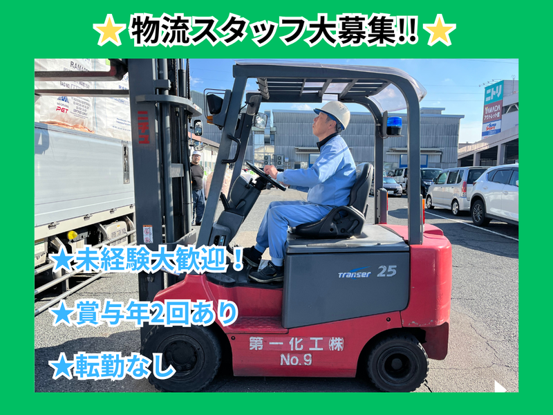 仕事内容 フォークリフトを使用した原料・製品の運搬・入出庫作業と在庫管理をお願いします。 【具体的には】 プラスチック製品の箱や原料袋をフォークリフトで運搬します。 工場⇔倉庫、倉庫⇔トラックと入出庫に伴い運びます。 積み下ろしの手作業は多少ありますが、トラックへの積み下ろしは基本ドライバーの方が行います。 業務量は日によって変わりますが、週単位で予定を組むため、その日にいきなり業務が増えるなどの心配はなく、プライベートの計画も立てやすいです。 「量&スピード重視」ではなく、「ゆっくり丁寧に」を大切にしています。 まずはイチから丁寧にお教えしますので、安心して始められます! 【研修について】 入社後、当社の製品をしっかり知っていただいた上で物流スタッフとして働いていただきます。 【資格取得について】 フォークリフト免許をお持ちでない方は会社負担で資格取得可能です! やってみたい!という方は是非ご応募ください! 【会社について】 私たち第一化工は、奈良市内で創業して70年目を迎える老舗安定企業と言われている会社です。 食品をはじめ、ドラッグストアやスーパーなどでよく見かける化粧品・医薬品・日用品などに使用するプラスチック容器やキャップを製造する総合メーカーです。 近年では育児休業取得推進やSDGsへの取り組みを評価いただき、メディアへの露出機会も増えています。 2026年11月には新工場を立ち上げ予定! <さまざまな受賞・認定を受けている企業です> ●優良申告法人(2019年) ●なら女性活躍推進倶楽部 登録(2020年) ●障害者雇用優良事業所 知事表彰(2021年) ●奈良県社員・シャイン職場づくり推進企業『総合表彰』受賞(2023年) ●奈良県が発行する「奈良県優良企業ガイドブック150選」に選出 ●健康経営優良法人2025 認定(2023年から3年連続認定) ●仕事と子育て両立支援企業『くるみん』認定(2024年) ●障がい者雇用に取り組む企業『もにす』認定(2024年) ●奈良県SDGs企業アドバンス認証(2025年) 【先輩スタッフからの一言】 学歴や資格は関係なく、スタッフ一人ひとりのがんばりを正当に評価し、年1回の昇給や年2回の賞与、決算賞与、各種手当、昇格などにどんどん反映してくれます。 先輩・後輩は関係なく、実力に合わせて新しい仕事も任せてもらえます。 私も全くの未経験でしたが、気さくで面倒見の良い上司・先輩たちの丁寧な指導と手厚いサポートのおかげで、すぐに業務に慣れ、年収もいい感じにアップしています! 社内ですれ違う際にはお互い挨拶をしたりと、部署を問わず社員同士のコミュニケーションが盛んで仲が良い社風です。