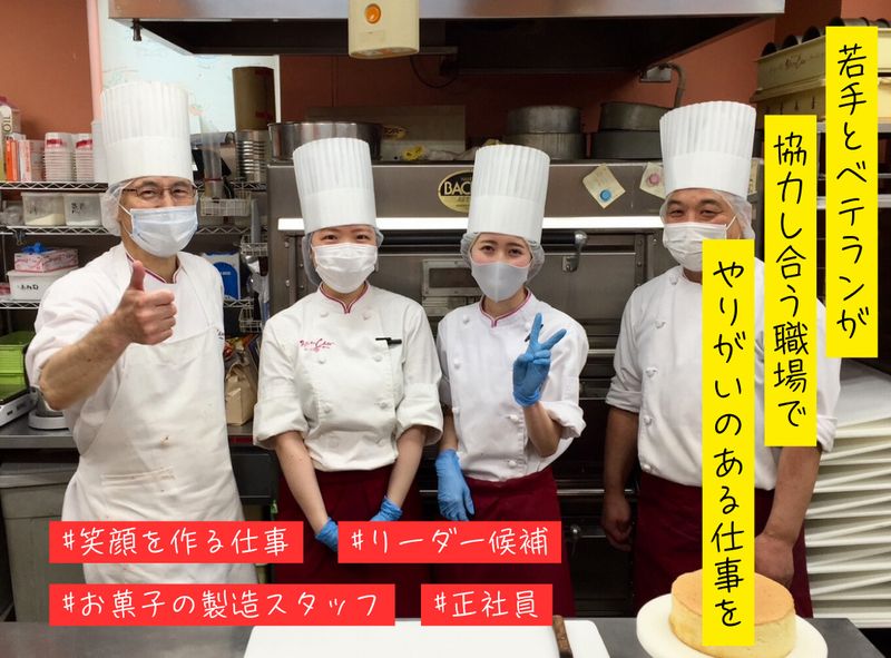 - 仕事概要・仕事に関するPR - 数年後には、パティスリーモンシェル製造部門の中心的スタッフとして活躍していただける方を募集します。 ★ショートケーキやバースデーケーキ、記念日ケーキなどの製造をお願いいたします。 パティスリーやベーカーリーショップ、ホテル、レストラン、カフェ、結婚式場、製菓工場… 業種業態は問いませんが、ケーキ製造の経験のある方を募集します。当店で今までの経験を活かしてみませんか。 ★まずは当店の特徴を知ってください。 試用期間は3ヶ月。その間に、スタッフとコミュニケーションを図りながら、当店の商品やレシピ、1日の仕事の流れ、各種イベントの流れ等を把握していただきます。その上であなたのセンスを活かしたケーキ作りをお願いします。もちろん、シェフもしっかりサポートさせていただきます。 ★やりがいのあるお仕事にしましょう! 大切な人の誕生日や記念日などにはケーキを、久しぶりに会う方に美味しいお土産を。 わたしたちは、ケーキやお菓子には、お客様にとって大切な人との笑顔で幸せなヒトトキを創り出すチカラがあると考えています。 現在30代・40代を中心に20代~50代のスタッフが活躍中。各々得意分野が異なっていたり、独自の感性を持った個性的な連中ですが、ケーキやお客様に対する想いは変わりません。 そんなやりがいのあるお店で、あなたのチカラを思う存分発揮してみませんか? - 求人情報 - ■1日のタイムスケジュール(例) 7:30 ショートケーキの仕上げ ↓ 10:00 スポンジケーキ焼成 ↓ 11:30 カスタードクリーム作り ↓ 12:30 休憩 ↓ 13:30 翌日の準備、ケーキの仕込み ↓ 16:30 後片付け、掃除、退勤 ・ - 会社・仕事の魅力 - 【パティスリーモンシェル】といえば… ご注文をいただいてからクリームを詰める「窯出しシュークリーム」が有名なお店! 出来立てをお渡しするから、シューはサクサク&クリームはフレッシュ! とても好評です♪ また、洋菓子だけではなく和菓子や焼き菓子も当店の魅力! 「仙台みそケーキ」「仙臺塩サブレ」など、人気商品がたくさん並んでいます。 手土産やギフト商品の販売を通じ、地域の皆様に愛され信頼されるお店を目指しています。 【モンシェルのお菓子を囲んで、笑顔の輪が広がって欲しい】 お菓子を造るとき、お客様に接するとき、私たちはいつもそう願っています。 そんな願いを一緒に分かち合える、新しい仲間を募集しています。