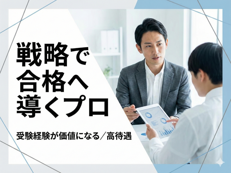 仕事内容 ✨月給27.5万円~/年収500万も目指せる ✨あなたの受験経験が誰かの道標になる ✨授業なし!コーチングに特化した業務 \「教える」より「導く」仕事/ 大学受験に挑む高校生に対して、 学習計画の作成や進路相談を行う アドバイザー業務です。 「どの参考書を使うか」 「どの大学を目指すか」 生徒の夢を叶えるための戦略を 一緒に考え、伴走してください。 【具体的な業務内容】 ✅志望校合格に向けた学習計画作成 ✅定期的な進路面談・コーチング ✅学習進捗の管理・モチベーションケア ✅大学情報の収集・提供 ✅自習室の管理・環境整備 【入社後の流れ】 大学入試の最新トレンドや コーチングスキルを学んでいただきます。 あなたの大学受験の成功体験や、 逆に「こうしておけば良かった」という 失敗談も貴重なアドバイスになります。 ■採用担当者からのメッセージ 難関大合格を目指す生徒たちの 頼れる兄貴分・姉御分として 活躍してください✨ 論理的思考力とコミュニケーション力が 活きるポジションです。 熱意ある方とお会いしたいです!