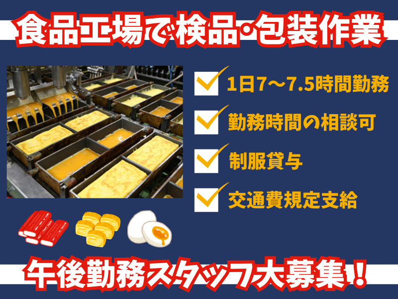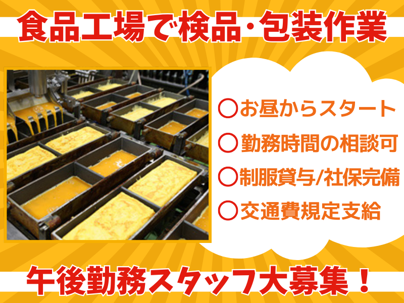 (午後から勤務)食品製造・検品や包装軽作業スタッフ